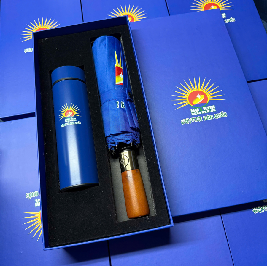 Set quà này đặc biệt phù hợp với điều kiện thời tiết tại Việt Nam, nơi mà ô dù là vật dụng không thể thiếu. Khi được in logo, ô dù trở thành một “biển quảng cáo di động” với diện tích hiển thị lớn.