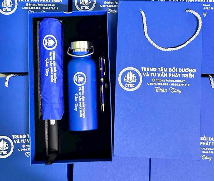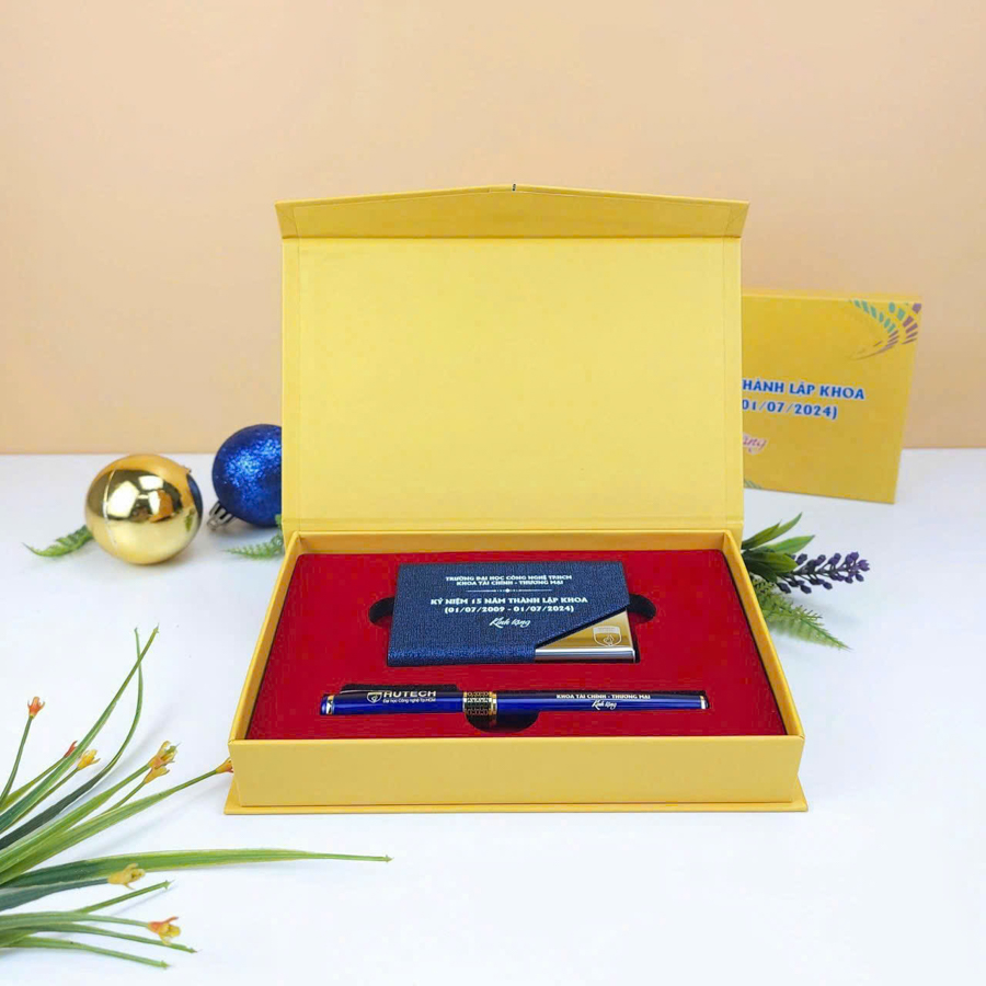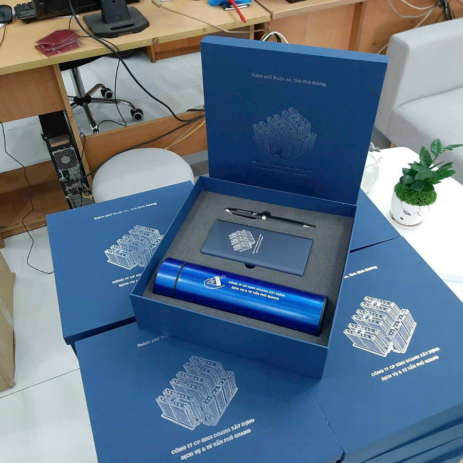Các set quà tặng cao cấp như sổ da, bút ký, bình giữ nhiệt được đóng gói trong hộp quà sang trọng luôn là lựa chọn hàng đầu. Ngoài ra, các set quà công nghệ như sạc dự phòng, USB hoặc loa mini cũng đang rất được ưa chuộng.