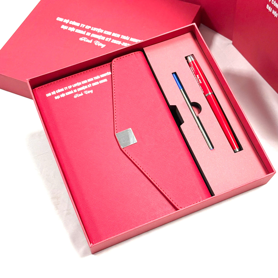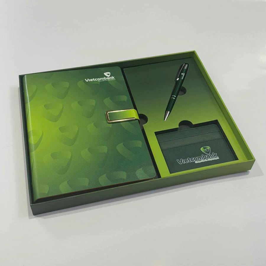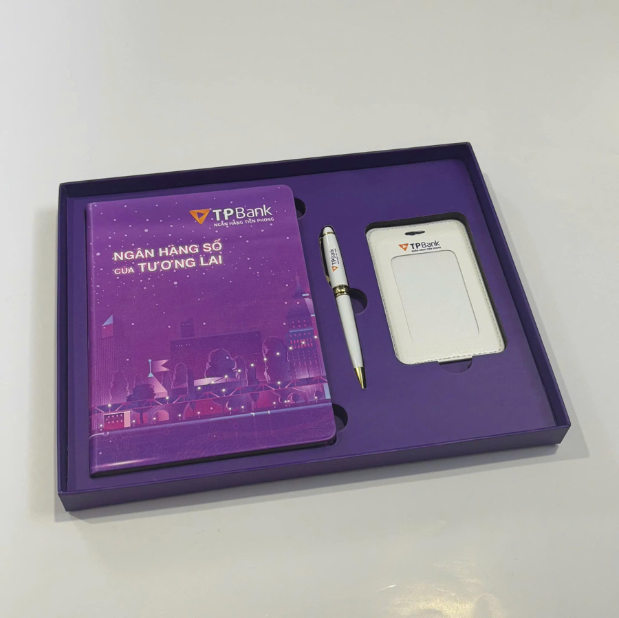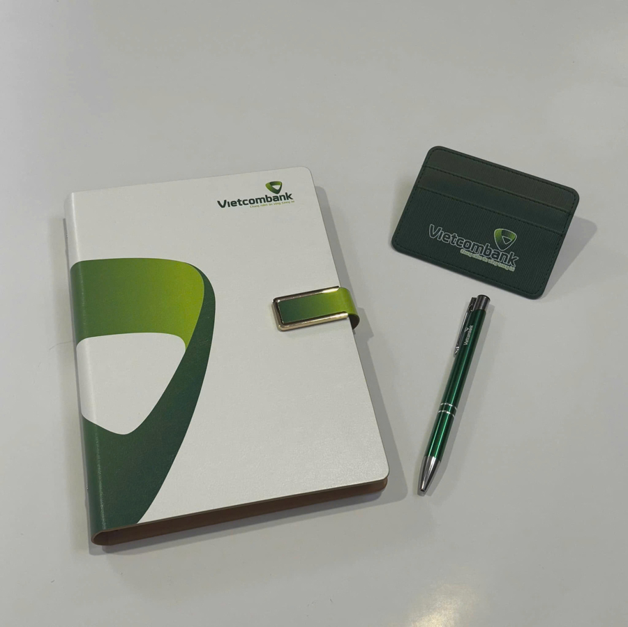 Đối với những đối tượng có vai trò đặc biệt trong doanh nghiệp như ban lãnh đạo, cổ đông lớn, khách hàng chiến lược, thì một món quà có thiết kế chỉn chu như bộ giftset sổ da và bút ký in logo là lựa chọn đáng cân nhắc. Bộ quà tặng thường bao gồm một cuốn sổ bìa da và một cây bút ký kim loại cao cấp, đặt trong hộp quà sang trọng in logo thương hiệu.