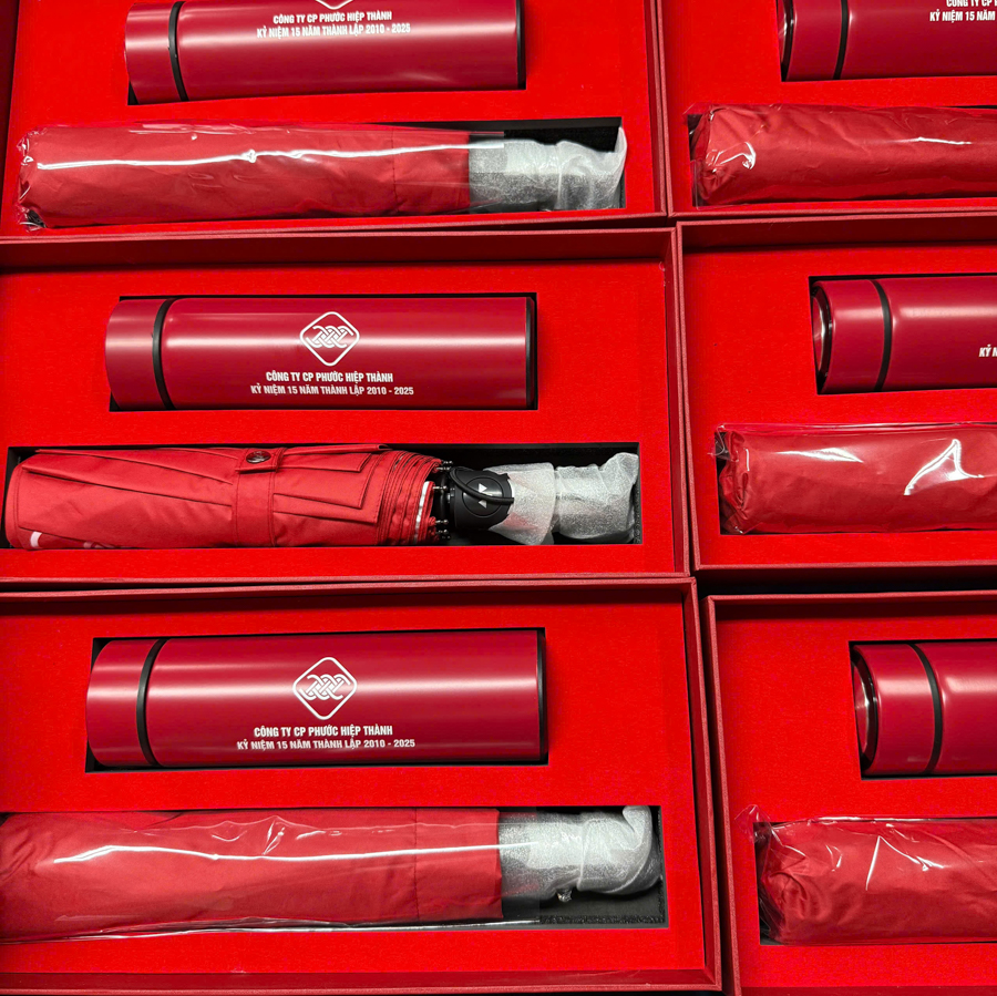 Để tạo ấn tượng mạnh tại các sự kiện kỷ niệm công ty, bộ quà tặng kết hợp giữa bình giữ nhiệt và ô dù in logo là lựa chọn không thể bỏ qua. Đây là sự kết hợp hài hòa giữa hai vật phẩm tiện dụng, thường xuyên xuất hiện trong đời sống hằng ngày.