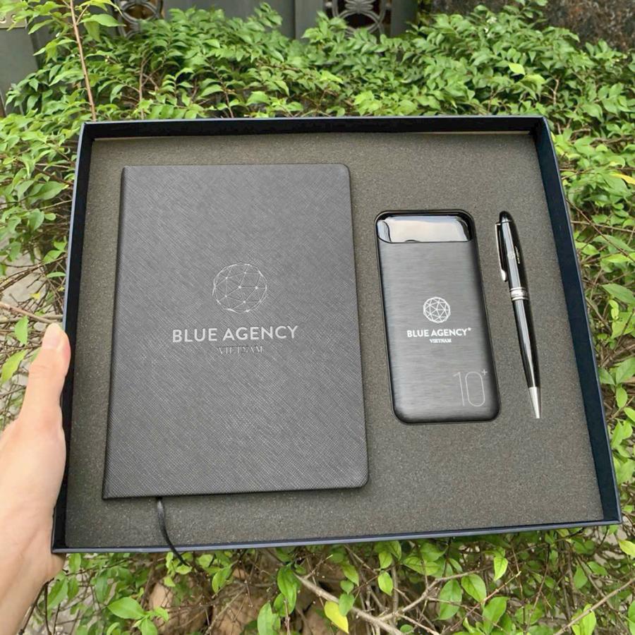 Nếu ngân sách rộng rãi hơn và bạn muốn tăng độ độc đáo, có thể mở rộng set quà với các phụ kiện tiện ích như bình giữ nhiệt, USB, pin sạc dự phòng, hoặc ô dù in logo. Những món đồ này không chỉ hữu ích trong cuộc sống hàng ngày mà còn giúp thương hiệu bạn tiếp cận với người dùng ở nhiều thời điểm, không gian khác nhau. Khi kết hợp cùng sổ da và bút ký, tổng thể set quà sẽ trở nên hài hòa, đầy đủ và gây ấn tượng mạnh.