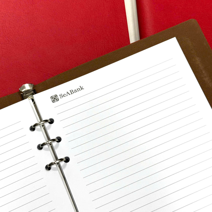 Logo in trên sổ da giống như “chữ ký thương hiệu” – mỗi lần người dùng mở sổ, thương hiệu lại được nhắc đến một cách tự nhiên. Hình ảnh đó không phô trương, không quảng cáo trực diện nhưng bền bỉ và lan tỏa trong mọi khoảnh khắc làm việc của người nhận.
