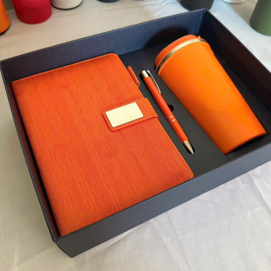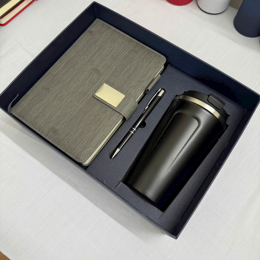 Khi nhắc đến quà tặng doanh nghiệp mang tính toàn diện, nhiều người thường nghĩ ngay đến bộ quà gồm sổ tay, cốc giữ nhiệt và bút ký. Ba món quà này không chỉ thể hiện sự chu đáo mà còn phù hợp với hầu hết những người làm việc trong môi trường văn phòng hay những khách hàng thường xuyên di chuyển.